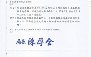 狂賀:新竹市112年度居家長照評鑑合格 新竹市一一二年度居家式長期照顧服務評鑑合格